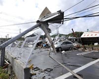 Two dead as powerful typhoon batters JapanTokyo (AFP) Oct 8, 2009 A powerful typhoon slammed into Japan's main island on Thursday, leaving two dead and a dozen injured as strong winds ripped off roofs, uprooted trees and prompted fears of landslides. Typhoon Melor, packing gusts of up to 162 kilometres (100 miles) an hour, cut a swathe across densely populated central Japan, causing travel chaos and power blackouts for hundreds of thousands of homes. ... read more |