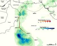 NASA's TRMM Satellite Provides Rainfall Estimate For Cyclone PhetGreenbelt MD (SPX) Jun 09, 2010 The Tropical Rainfall Measuring Mission satellite, known as TRMM is a "flying rain gauge" in space, and can provide rainfall estimates from its position in orbit around the Earth. Data accumulated from TRMM enabled visualizers to create a map of rainfall generated by Cyclone Phet as it marched through the Arabian Sea from May 31 to June 6. The heaviest rainfall occurred over open waters, b ... read more |