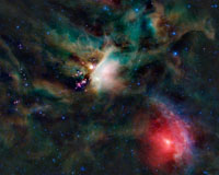 The Art Of Making StarsPasadena CA (JPL) Apr 04, 2011 It might look like an abstract painting, but this splash of colors is in fact a busy star-forming complex called Rho Ophiuchi. NASA's Wide-field Infrared Explorer, or WISE, captured the picturesque image of the region, which is one of the closest star-forming complexes to Earth. The amazing variety of colors seen in this image represents different wavelengths of infrared light. The bright ... read more |