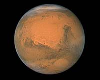 Pasadena CA (SPX) Dec 19, 2007 Now playing online -- a new Martian movie showing the planet rotating. The movie was made from four images taken by the Hubble Space Telescope's Wide Field Planetary Camera 2, built and designed by JPL. The images were taken within 36 hours of today's closest approach to Earth by Mars. The camera captured the views when Mars was just 88 million kilometers (55 million miles) away. Mars and Earth have a "close encounter" about every 26 months. This is due to differences in the two planets' orbits. For example, Earth orbits the sun twice as fast as Mars does, so it laps the Red Planet about every two years. And because both planets move in elliptical orbits, their close encounters vary in distance. In 2003, Mars was about 20 million miles closer than it is today. One of the new images shows two dominant dark swatches just south of the equator that were labeled by early Mars observers. A large triangular shape to the right is Syrtis Major, while a horizontal lane to the left is Sinus Meridani. NASA's Mars Rover Opportunity landed at the western end of this region in January 2004, while its twin, Spirit, landed that same month on the other side of Mars. Both rovers are still operating nearly four years later. The new images show no dust storms on Mars, but reveal significant clouds in the northern and southern polar cap regions. Another NASA Mars rover, Phoenix, will land in the northern polar region in May 2008. Community Email This Article Comment On This Article Related Links Mars Rotation Movie Mars News and Information at MarsDaily.com Lunar Dreams and more
