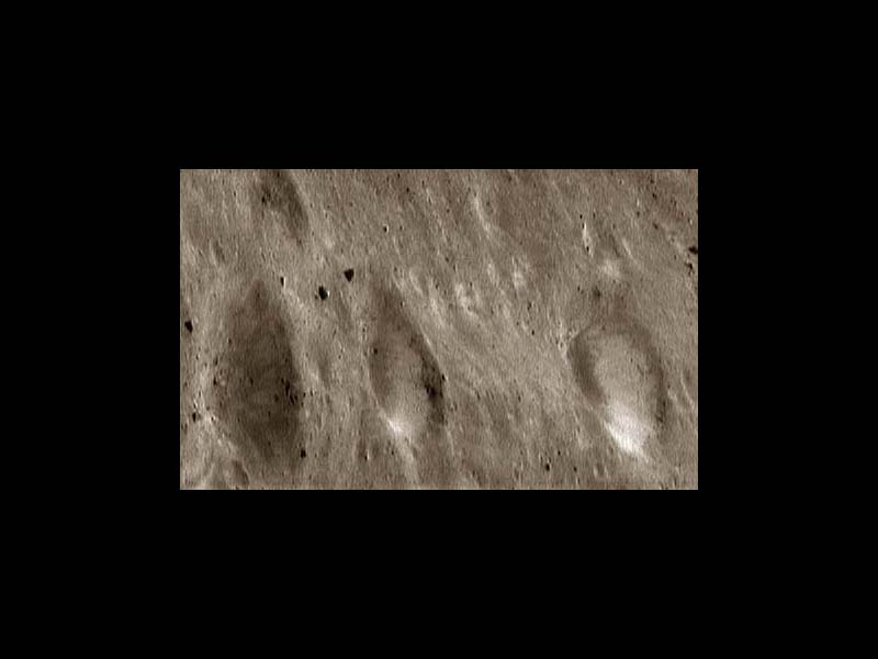 Laurel - August 25, 2000 - Laurel - August 25, 2000 - The craters on Eros are among its most spectacular and beautiful features. I am not sure why, but I find something about rugged terrain to be exciting, and I suspect it's hard-wired in the human brain. For some reason, when artists wish to inspire us, they paint intrepid explorers or ancient hermits at the edge of a great cliff, or on a mountain top, or peering over clouds into a magnificent valley - but whether the artists are 19th century Americans or 11th century Chinese, they do not picture the subjects standing in the midst of vast flat plains extending to the horizon. When I talk to people who live in flat country or who visit there, I often hear complaints about the lack of topography, but I never hear of people being inspired by flatness. Fortunately for those of us who like topography, on Eros there is hardly a flat spot to be found. Much of the ruggedness comes from the huge number of craters. We saw last time how the density of craters allows us to infer relative ages of surfaces, but there is much more we can learn. This is because a cratering event excavates far below the surface of an object and thereby exposes its interior, performing a natural experiment that we could not perform on our own. Not only does this give us a chance to see what the interior is made of, we can often infer mechanical properties of the target, using our knowledge of how craters are formed. We think that impacts on asteroids occur at a typical velocity of around 5 km/s. That is in itself a complicated story for another day, because it reflects the distributions of bodies in the asteroid belt, or specifically how many objects of a given size are found in a given orbit. The problem is, the objects that would make the craters we now see on Eros are so small and so far from Earth that we have no way to detect them - not even using the Space Telescope - so we have no direct knowledge of how many such objects there are or where they may be. Nevertheless, if we assume that these objects, that we cannot see, have the same orbital distributions as the much larger objects that we can see, then we can calculate the average speeds at which objects would collide if their orbits happen to intersect. That is where numbers like 5 km/s come from, and we don't really know how good they are. High as these impact speeds are, they are small compared to the speeds at which an asteroid would typically impact Earth (a very small asteroid, we would hope). This is because of Earth's gravity, which pulls any impactor inward and accelerates it to speeds of 15 km/s or more, depending on where the impactor came from (that is, what its initial orbit was). At such high speeds, an impact is more like an explosion than the mere penetration of one object by another. This is what Daniel Barringer did not appreciate when he convinced himself and numerous unlucky investors that fortunes could be made by mining the iron from the meteorite that made Barringer Crater (update of August 7). A hypervelocity impact at a speed of 15 km/s on Earth, or even the slower 5 km/s impacts in the asteroid belt, would be completely outside our everyday experience. Even high powered rifles fire bullets at speeds below 1 km/s, so Barringer would never have been able to see for himself the effects of a hypervelocity impact. What he did not understand was that a projectile moving even at 3 km/s carries as much kinetic energy as the explosive energy in the same mass of TNT. A projectile at 15 km/s carries even more energy, higher by the square of the velocity, or 25 times more than a 3 km/s projectile. When an impact occurs in rock at 15 km/s, the peak pressures reach 500 GPa. The GPa, or gigapascal, may be an unfamiliar unit of pressure, but it corresponds to 9900 times atmospheric pressure, and even a few GPa suffices to crush the strongest steels we know how to make. Hence when the iron meteorite hit the ground to make Barringer Crater, it was completely crushed, and partly melted and vaporized, even though iron meteorites are made of very strong material. Much of the original projectile mass was expelled from the crater. Not only that, but the original size of the meteorite was much smaller than Barringer thought - maybe only 30 meters in diameter if the impact occurred at 20 km/s, even though the crater itself is a kilometer wide. This meteorite (30 meters is too small to be considered an asteroid) carried an energy equal to that of a 10 megaton thermonuclear bomb. Such was the explosive nature of the impact, and if Barringer had understood it, he would not have died a ruined man. However, Barringer might never have become interested in the crater if he had discerned that there was no fortune to made, and that - in my scientist's mind - would have been a tragedy.