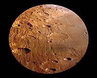 Paris, France (ESA) Oct 06, 2004 This image, taken by the High Resolution Stereo Camera (HRSC) on board ESA's Mars Express spacecraft, shows the Claritas Fossae tectonic grabens and part of the Solis Planum plains. The image was taken during orbit 508 in June 2004 with a ground resolution of approximately 40 metres per pixel. The displayed region is the eastern part of Claritas Fossae and the western part of Solis Planum at longitude 260� East and latitude of about 28� South. The diffuse blue-white streaks in the northern parts of the scene are clouds or aerosols. The Claritas Fossae ('fossa' is Latin for trough) region is characterised by systems of 'grabens' running mainly north-west to south-east. These can be traced several hundred kilometres up to the northern Tharsis shield volcanoes. A graben forms when a block of the planet's crust drops down between two faults, due to extension, or pulling, of the crust. Grabens are often seen together with features called 'horsts', which are upthrown blocks lying between two steep-angled fault blocks. A 'horst and graben' system can occur where there are several parallel faults. Geographically, the grabens separate the eastern volcanic plains of the Solis Planum region from the western Daedalia Planum lava plains. The lava blankets of the Solis Planum area cover the eastern parts of the older Claritas Fossae ridge and surround some of the higher ground. The geological history of this region can be reconstructed by analysing the layers of tectonic grabens, impact craters, volcanic features and even small valley networks. The complexity of this superposition record suggests that some of the events took place at the same time. The detailed view of the large southern impact crater shows patches of dark material which are located near the central and marginal parts of the impact crater floor. This material may be of volcanic origin. Image resolution has been decreased for use on the internet. This colour image was processed using the nadir (vertical view) and colour channels. The HRSC experiment on ESA's Mars Express mission is led by the Principal Investigator Prof. Gerhard Neukum of the Freie Universit�t Berlin, who also designed the camera. The experiment's science team consists of 45 Co-Investigators from 10 nations. The camera was developed at the German Aerospace Centre (DLR) and built in co-operation with industrial partners EADS Astrium, Lewicke Microelectronic GmbH and Jena-Optronic GmbH). The HRSC is operated by DLR Institute of Planetary Research through ESA's European Space Operations Centre, Darmstadt. The systematic processing of image data is carried out at DLR. The image shown here was processed by the FU Berlin group in co-operation with DLR, Berlin. Community Email This Article Comment On This Article Related Links Mars Express SpaceDaily Search SpaceDaily Subscribe To SpaceDaily Express Mars News and Information at MarsDaily.com Lunar Dreams and more
