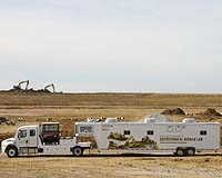 Ames IA (SPX) Dec 08, 2005 It can compact, grind, mix, shake and otherwise analyze the soil and earthworks that support roadways and construction projects. And it can do all that testing right next to the heavy equipment doing all the dirty work. Iowa State University's new Geotechnical Mobile Lab is a $350,000, one-of-a-kind laboratory-on-wheels that allows engineers to study construction sites and come up with immediate answers. Researchers say those answers could lead to more efficient building projects, reduced construction costs, better use of taxpayer investments and better performing roads. "This really allows us to do cutting-edge research and be a national leader in doing geotechnical research," said Tom Cackler, the director of the Partnership for Geotechnical Advancement at Iowa State University's Center for Transportation Research and Education. "It's pretty exciting." Dave White, an Iowa State assistant professor of civil, construction and environmental engineering, recently took the lab to a Minnesota Department of Transportation construction site along U.S. Highway 14 near Janesville, Minn. Engineers used it to do soil compaction tests. They compared the results of their tests with the results from new technology built into a rolling machine. He said the mobile lab provided results twice as fast and allowed all the testing equipment to be right on job site. The lab's 44-foot aluminum trailer includes a diesel generator, a conference area, a satellite Internet system, a laptop computer, a weather station, soil compactors, a soil shaker, a soil grinder, a soil mixer, ovens to dry soil, a vibrating table to test soil density, global positioning technology and lots more. "This provides us the opportunity to conduct research in the field and come back with real-time results," White said. "It also provides the opportunity to train future engineers with state-of-the-art test equipment." Vern Schaefer, an Iowa State professor of civil, construction and environmental engineering, said the lab will help advance what's known as intelligent construction, the use of computer, laser and other technologies to improve the efficiency and quality of construction. Schaefer said the lab will also be useful in testing and verifying new construction equipment and technologies. Departments of transportation often require new ideas be proven before they'll use them on a job site. Heath Gieselman, a research technician for the Center for Transportation Research and Education, recently led a tour of the mobile lab. Everything was in its place. And everything was spotless. That's the way researchers want to keep it, he said. It makes for the best science. It's also a necessity because there's not another lab like it. That means it attracts visitors every time it rolls onto a job site. The lab is sponsored by the McAninch Corp. of West Des Moines. Community Email This Article Comment On This Article Related Links Iowa State University McAninch Corp. SpaceDaily Search SpaceDaily Subscribe To SpaceDaily Express Dirt, rocks and all the stuff we stand on firmly