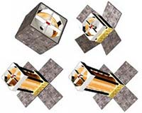 Paris, France (ESA) Jul 28, 2005 A novel suitcase-sized telescope could revolutionise the way we see the Earth and other planets. ESA has supported the work of a group of students in developing the Dobson Space Telescope, being tested this month aboard ESA's parabolic flight campaign aircraft. This experimental prototype launches in a compact configuration and then unfolds to provide a cost-effective space telescope. It could lead to fleets of low-cost telescopes, bigger than the Hubble Space Telescope. Large payloads are difficult to put into space because they are usually heavy and expensive to launch. Now a revolutionary design of unfolding telescope, inspired by telescopes used by amateur astronomers, is ready to enter a phase of detailed testing. If successful, it could dramatically reduce the cost of placing telescopes in space. The telescope is a project of the Department of Astronautics at the Technische Universit�t Berlin, Germany. "We called our project the Dobson Space Telescope because we borrowed the idea from the Dobsonian telescopes used by amateur astronomers," says project manager Tom Segert, who has recently completed his degree at TU Berlin. Dobsonian telescopes are often comprised of two mirrors, held the correct distance apart by long poles. They can be dismantled and transported by car to a good observing site, where there are reassembled with nothing more complicated than a screwdriver. In space, however, a screwdriver is useless unless you have an astronaut to turn it and so Segert plans to use a motor to unfold his telescope. Working on a shoestring budget, his first prototype used inflatable bicycle tyres to push the mirrors into position. When this proved incapable of aligning the telescope optics, Segert turned to metal truss rods and micromechanics to unfold everything into its correct place. Using a grant from ESA's General Studies Programme, Segert and other TU Berlin students have written a full technical report and built a prototype for testing in this month aboard ESA's parabolic flight campaign aircraft. As the aircraft flies special manoeuvres, the prototype will experience periods of free-fall that mimic the conditions in space. During this time, Segert will test the telescope�s ability to unfold. Eventually, Segert hopes for a demonstration mission in space.