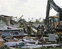 Washington (AFP) April 28, 2008 A tornado ripped through southeastern Virginia on Monday, causing about 200 injuries and damaging homes, authorities said. "Suffolk looks to be hardest hit," said Bob Spieldenner, spokesman for the Virginia Department of Emergency Management, referring to the city in the southeast corner of the state. "They are estimating somewhere around 200 injuries." A local hospital was also hit but was still able to receive patients, he said. Local television footage showed houses blown apart and trees cut down by the tornado. An earlier report of one fatality turned out to be inaccurate, according to Spieldenner. The twister had hit other south-central counties along the border of North Carolina on Monday afternoon but the extent of the damage was difficult to ascertain with the onset of nightfall, Spieldenner said. "We are still trying to get an idea of the scope of the damage," he said. Virginia Governor Tim Kaine had declared a state of emergency to free up state resources, he said. "At least 23 properties were heavily damaged" in Suffolk, said Dana Woodson, spokeswoman for the city of Suffolk. Community Email This Article Comment On This Article Related Links Bringing Order To A World Of Disasters A world of storm and tempest When the Earth Quakes