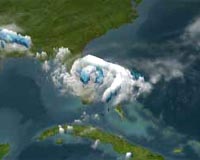 Baltimore MD (SPX) Aug 22, 2008 At 2:00 p.m. EDT, Thurs. Aug. 21, Tropical Storm Fay is finally making landfall again after meandering in the Atlantic Ocean over the last day. She was crossing Florida east coast near Flagler Beach at that time. Her center was near 28.4 degrees north latitude and 81.0 degrees west longitude. She was trudging forward in a west-northwest direction near 2 mph. Her maximum sustained winds were still being clocked at 60 mph. Fay's minimum central pressure was near 993 millibars. The Moderate Resolution Imaging Spectroradiometer (MODIS) on NASA's Aqua satellite took this picture of Tropical Storm Fay at 2:35 p.m. local time (18:35 UTC) on August 20, 2008. The eye of the storm apparently hovers near the east coast of Florida, and clouds from the storm stretch hundreds of kilometers eastward over the Atlantic, and northward over Georgia and South Carolina. Her forecast track has changed a little, based on movement of fronts and high pressure system over the next couple of days, as calculated by computer models. She's forecast to move west across the Florida Panhandle then curve northwest into central Mississippi by Tuesday. Community Email This Article Comment On This Article Share This Article With Planet Earth