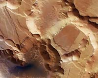 Tucson AZ (SPX) Dec 16, 2009 Catherine Weitz, a senior scientist at the Tucson-based Planetary Science Institute, has reported new evidence for multiple, water-related geologic processes on Mars. She and her colleagues studied light-toned deposits (LTDs) within troughs of the Noctis Labyrinthus region in western Valles Marineris using data gathered by three Mars Reconnaissance Orbiter (MRO) instruments: the High Resolution Imaging Science Experiment (HiRISE) camera, the Context Camera (CTX) and the Compact Reconnaissance Imaging Spectrometer for Mars (CRISM). Weitz presented the research results during a morning session of the American Geophysical Union Conference in San Francisco, Calif. "We analyzed ten troughs containing well-exposed LTDs, and we found a lot of variability that we didn't expect to see," she said. "We found that each of the troughs with LTDs has a unique mineralogy, and, therefore, the processes occurring in each trough were very localized." Weitz and her team identified various types of clays, hydrated silicas, and sulfates in these small basins, which are typically 30 to 100 kilometers across. One LTD included dozens of beds of varying thickness, brightness, color and erosional structure, suggesting that significant amounts of water once existed there. In addition, sulfates were mixed with clays within the deposits, indicating that ph levels may have fluctuated between acidic and alkaline conditions. Another LTD is buried several meters beneath wind-deposited material and is only exposed in the trough's upper walls, indicating it is older than the trough. In still another area, clays are buried beneath younger plains along the trough floor, while in the same trough, but a few kilometers away, there are exposures of hydrated silica and calcium sulfate. The wide variability in deposits and mineralogy in these and the other basins suggests a complex hydrologic history, including multiple events in some troughs, Weitz said. "Clearly, these areas were affected by water," she added. "In some cases there had to be multiple events. But we don't know how much water was involved or whether it was always a flowing liquid." "It might have been groundwater coming from Tharsis, the large volcanic complex to the west," she said. "There could have been active volcanism that produced water by melting snow, ice, or underground, hydrothermal processes. These little basins could then have filled or partially filled with some of that water. Another possibility is that material was already in several of the troughs, perhaps as volcanic ash or lava flows, and some kind of hydrothermal activity may have altered these pre-existing deposits." Weitz and her colleagues identified LTDs using the wide-range CTX camera that covers about a 30 km swath at a spatial resolution of 6 meters per pixel. Then they zeroed in on the areas of interest using HiRISE visible light images that cover about a 5-km-wide area with a resolution of about 26 centimeters per pixel. Finally, the corresponding CRISM data - in the visible and near infrared regions - revealed the hydrated minerals within each LTD. "It's great to have these complementary data sets," Weitz said. "Together, the synthesis of these three data sets provides valuable morphologic and mineralogic information needed to interpret the geologic setting and origin of the light-toned deposits within the troughs of Noctis." The LTDs both pre-date and post-date trough formation and occurred between the Noachian (4.6 to 3.5 million years ago) and Amazonian (1.8 billion years ago to the present) eras. The sediments in the LTDs could have formed at the bottom of lakes or pools, but materials also could have been deposited by the wind or fallen as volcanic ash and then been altered by water. Noctis Labyrinthus is a region of Mars that's located between the volcanic Tharsis upland and Valles Marineris, a huge system of canyons. Those working with Weitz on the research include Janice Bishop, of SETI Institute/NASA Ames; Leah Roach, of Frontier Technology; Ralph Milliken, of the Jet Propulsion Laboratory/Caltech; and J. Alexis Rodriguez, of the Planetary Science Institute. Share This Article With Planet Earth