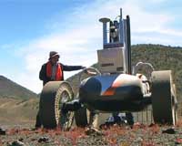 Moon Tools A NASA-developed rover called SCARAB showed how a prospecting rover could dig beneath the dusty lunar surface to process soil in order to extract oxygen. A similar rover on the moon could look for water ice and volatile gases such as hydrogen, helium and nitrogen in the permanently shadowed craters of the moon's poles. Larger systems could produce oxygen from greater quantities of moon soil. Roxygen (developed by NASA) and the Precursor In Situ Resource Utilization Lunar Oxygen Testbed, or PILOT (developed by Lockheed Martin) both feature a hydrogen reduction system that can produce and store oxygen from soil. "We're trying to make the lunar outposts more self-sustaining," explained Tom Simon, head of the OPTIMA program at NASA's Johnson Space Flight Center, which is overseeing the development of the PILOT and ROxygen test units. "We want to produce oxygen, but we also want to extract oxygen from the regolith so that we can combine it with what's left of the residual hydrogen from the descent tanks and make water. Our goal is to never send a tank of oxygen or a tank of water to the moon." During this field test, a robotic excavator, similar in size and weight to those currently exploring the planet Mars, showed how soil could be extracted and delivered to the ROxygen system. Also tested was an excavator that uses a bucket drum to collect and deliver soil to the PILOT system. "It's one thing to test these instruments in the laboratory," said Hamilton, "but that really doesn't tell you how it will perform during a lunar mission. Our challenge is to replicate those conditions as closely as possible to ensure that the test results will be a true reflection of how these instruments will perform on the moon."