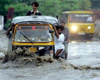 Lucknow, India (AFP) Aug 24, 2008 The death toll from monsoon-related accidents reached 800 and two million people have been displaced by flooding following heavy rains across India, officials said on Sunday. At least 26 people died in overnight accidents in northern Uttar Pradesh, taking the toll to 686 in the country's most populous state since the monsoon struck in June, Relief Commissioner G. K. Tandon said. "Several districts are receiving continuous rains for the past month and a half," Tandon said in the state capital Lucknow as local aid agencies backed by World Health Organisation staff rushed emergency supplies to those affected. Tandon put the number of people hit by the floods at 1.29 million and said 3,000 villages were swamped in Uttar Pradesh, in monsoon damage he described as "unprecedented". Lightning strikes, boat accidents and house collapses are common during the June-September monsoon in tropical India. In the adjacent eastern state of Bihar, 24 people died in rain-linked accidents since Saturday, a government spokesman said in the regional capital Patna. The latest fatalities raised Bihar's monsoon death toll to at least 60 so far this month, according to the latest figures. "Nearly 750,000 people are reeling under the impact of the floods," a Bihar Disaster Management Department spokesman said. The army deployed rescue helicopters as experts warned seven rivers in Bihar were in spate and that more rain was forecast. Northern Punjab saw 14 deaths in August, while 40 others died in heavy downpours in southern India during the month, according to separate official reports. Authorities in New Delhi evacuated scores of farmers from the banks of Yamuna as the river flowed at danger levels, officials said on Sunday. "The river banks are now swamped and we are ready to plug any breach that may occur in the anti-flood embankments," a city flood official said. Last year more than 2,000 people were killed in the worst monsoon floods in decades that wreaked havoc across South Asia. strs-pc/bgs/mtp Community Email This Article Comment On This Article Share This Article With Planet Earth