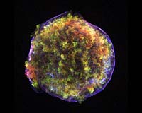 Boston MD (SPX) Sep 23, 2005 Astronomers have found compelling evidence that a supernova shock wave has produced a large amount of cosmic rays, particles of mysterious origin that constantly bombard the Earth. This discovery, made with NASA's Chandra X-ray Observatory, supports theoretical arguments that shock waves from stellar explosions may be a primary source of cosmic rays. This finding is important for understanding the origin of cosmic rays, which are atomic nuclei that strike the Earth's atmosphere with very high energies. Scientists believe that some are produced by flares on the Sun, and others by similar events on other stars, or pulsars or black hole accretion disks. But, one of the prime suspects has been supernova shock waves. Now, a team of astronomers has used Chandra observations of Tycho's supernova remnant to strengthen the case for this explanation. "With only a single object involved we can't state with confidence that supernova shock waves are the primary source of cosmic rays," said John P. Hughes of Rutgers University in Piscataway, New Jersey, and coauthor of a report to be published in an upcoming issue of The Astrophysical Journal. "What we have done is present solid evidence that the shock wave in at least one supernova remnant has accelerated nuclei to cosmic ray energies." In the year 1572, the Danish astronomer Tycho Brahe observed and studied the sudden appearance of a bright "new star" in the constellation Cassiopeia. Now known as Tycho's supernova remnant, the event created a sensation in Tycho's time because it exploded the myth that stars never change. Four centuries later, the Chandra results on Tycho's remnant show that some modern ideas of the aftermath of supernova explosions may have to be revised. The report by Hughes and colleagues demonstrates that the shock wave produced by the explosive disruption of the star behaves in a way that cannot be explained by the standard theory. The supernova debris is observed to expand at a speed of about six million miles per hour. This rapid expansion has created two X-ray emitting shock waves - one moving outward into the interstellar gas, and another moving inward into the stellar debris. These shock waves, analogous to the sonic boom produced by supersonic motion of an airplanes, produce sudden, large changes in pressure, and temperature behind the wave. According to the standard theory, the outward-moving shock should be about two light-years ahead of the stellar debris (that's half the distance from our sun to the nearest star). What Chandra found instead is that the stellar debris has kept pace with the outer shock and is only about half a light-year behind. "The most likely explanation for this behavior is that a large fraction of the energy of the outward-moving shock wave is going into the acceleration of atomic nuclei to speeds approaching the speed of light," said Jessica Warren, also of Rutgers University, and the lead author of the report in the Astrophysical Journal. Previous observations with radio and X-ray telescopes had established that the shock wave in Tycho's remnant was accelerating electrons to high energies. However, since high-speed atomic nuclei produce very weak radio and X-ray emission also, it was not known whether the shock wave was accelerating nuclei as well. The Chandra observations provide the strongest evidence yet that nuclei are indeed accelerated, and that the energy contained in high-speed nuclei is about 100 times that in the electrons. Hughes also pointed out that the Chandra result for Tycho's remnant significantly changes astronomers' view of the evolution of supernova remnants. A large component of cosmic ray nuclei alters the dynamics of the shock wave, and may require changing the way that astronomers estimate the explosive energy of a supernova from the properties of its remnant. NASA's Marshall Space Flight Center, Huntsville, Ala., manages the Chandra program for the agency's Science Mission Directorate. The Smithsonian Astrophysical Observatory controls science and flight operations from the Chandra X-ray Center in Cambridge, Mass. Community Email This Article Comment On This Article Related Links Chandra at Harvard SpaceDaily Search SpaceDaily Subscribe To SpaceDaily Express Stellar Chemistry, The Universe And All Within It