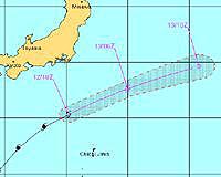Tokyo (AFP) May 13, 2008 A strong typhoon was churning in the Pacific Ocean towards Japan on Tuesday, whipping up high waves and packing powerful winds in the Tokyo area, the weather agency said. Typhoon Rammasun, which means "god of thunder" in Thai, was causing winds of up to 111 kilometres (69 miles) per hour in the ocean off Tokyo Bay, the Japan Meteorological Agency said. But the season's second typhoon was moving northeast at 35 kilometres an hour and as expected to dissipate in the Pacific Ocean without making landfall. The typhoon comes 10 days after a devastating cyclone hit Myanmar, which says 62,000 people are dead or missing. Community Email This Article Comment On This Article Share This Article With Planet Earth