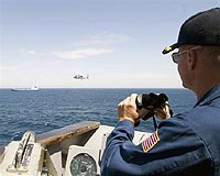 Mogadishu (AFP) Oct 1, 2008 The US Navy on Wednesday kept up the pressure on Somali pirates holding a Ukrainian cargo shipment of tanks and other weapons, as the European Union agreed an anti-piracy operation in the region. Warships from the United States and other navies have blockaded the MV Faina in a port off Somalia's Indian Ocean coast, where the pirates who captured it are demanding a 20-million-dollar payment for the cargo. The US Defense Department said it expected a Russian warship to arrive within days, but said it had laid the emphasis on ensuring a "peaceful resolution." A Russian naval spokesman also played down talk of confrontation, denying in a statement Wednesday evening that the vessel had been sent to fight the pirates, who are holding Russia seaman among the crew of the MV Faina. "Such declarations are of a provocative character, they can prejudice the talks talks aimed at freeing the crew of the cargo ship," said Russian navy spokesman Igor Dygalo. The patrol boat Intrepid despatched from the Baltic fleet to the Indian Ocean was there to protect Russian shipping there, he said. A meeting of EU defence ministers in Deauville, northern France, meanwhile, agreed to launch an anti-piracy security operation off the coast of Somalia, French Defence Minister Herve Morin said Wednesday. "There is very broad European willingness," said Morin. "Many countries want to take part. Ten have clearly given their accord to take part in such a mission," he added. They included Belgium, Cyprus, France, Germany, Lithuania, the Netherlands, Spain, Sweden and possibly Britain, he said. Somali President Abdullahi Yusuf Ahmed urged Somalis and the international community to combat rising piracy off the lawless nation's waters, which has seen 60 ships seized this year alone. "They (pirates) are imposing an embargo on the Somali people and the international community because they are blocking movement between the Mediterranean and the Indian Ocean, which affects not only Somalia but the whole world," Yusuf told reporters in Mogadishu. "I call on the Somali people to fight against the pirates. I also call on the international community to act quickly on what is happening in Somali waters as well as on shore," he added. The pirates, who seized the Belize-flagged freighter with its 21-man crew and 33 Soviet-era T-72 battle tanks last Thursday, say they are under 24-hour surveillance from US ships and helicopters. "We are prepared for any eventuality," warned pirate spokesman Sugule Ali, by satellite telephone from the ship. The Bahrain-based US Navy Fifth Fleet said several ships and helicopters were in the area to support the destroyer USS Howard as it observed its target, now docked at the Somali port village of Hobyo. Abdikadir Musa Yusuf, deputy seaports minister for the Somali breakaway region of Puntland, said, "There are negotiations going on between the pirates and the foreign ships." The Pentagon said it wanted a peaceful resolution and US warships were there to make sure pirates do not make off with its military cargo. "But at this point, what we are most concerned about is seeing a peaceful solution to this problem," Pentagon spokesman Geoff Morrell said, adding that US Navy was not negotiating with the pirates. He said the main US concern was "that this cargo does not end up in the hands of anyone who would use it in a way that would be destabilising to the region." There are 21 Ukrainians, Russians and Latvians in the crew. The ship's captain died of an illness on board, according to Russian media. "We are sticking to the demand for 20 million dollars. This is not ransom, but a fine for unlawfully transporting weapons on Somali waters," Ali said. The pirates and the US Navy say the arms were headed for Sudan. The Ukrainian owners of the freighter and the Kenyan government said the tanks were destined for Kenya. Piracy is rife and well organised in the region where Somalia's northeastern tip juts into the Indian Ocean, preying on a key maritime route leading to the Suez Canal through which an estimated 30 percent of the world's oil transits. burs-jmm/bkb/jj Community Email This Article Comment On This Article Share This Article With Planet Earth