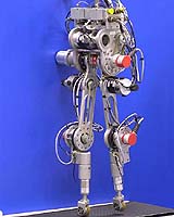 Moffett Field CA (SPX) May 16, 2005 If you nudge this robot, it steps forward and catches its balance much like a human. The machine called RABBIT, which resembles a high-tech Tin Man from "The Wizard of Oz," minus the arms, was developed by University of Michigan and French scientists over six years. It's the first known robot to walk and balance like a human, and late last year, researchers succeeded in making RABBIT run for six steps. It has been able to walk gracefully for the past 18 months. U-M researcher Jessy Grizzle, who developed the control theory for the robot, said that the balancing ability programmed into the robot has many applications in the medical field, such as so-called smart prosthetics that adapt to the wearer, and physical rehabilitation aids to help people regain the ability to walk. Bipedal robots or two-legged walking machines in existence today walk flat-footed, with an unnatural crouching or stomping gait, said Grizzle, professor of electrical engineering and computer science. Up until RABBIT, scientists produced stability in two-legged walking machines largely through extensive trial and error experiments during development, Grizzle said. Current walking machines use large feet to avoid tipping over and do not require the robot's control system to be endowed with a real understanding of the mechanics of walking or balance, Grizzle said. If you provided these robots with a pair of stilts or asked them to tip-toe across the room, they would just fall over. RABBIT was built without feet. Its legs end like stilts so that it pivots on a point when it moves forward. "If you build a robot that pivots on a point you must understand how the different parts interact dynamically, or else it will fall over," Grizzle said. If a robot has no feet, it's impossible to "cheat." The U-M/French control theory for walking, which was published in a recent paper in the International Journal of Robotics Research, gives scientists an analytical method that can predict in advance how the robot will move, Grizzle said. "The concept of stability is reduced to two formulas," Grizzle said. "It's a matter of understanding enough about the dynamics of walking and balance so that you can express with mathematical formulas how you want the robot to move, and then automatically produce the control algorithm that will induce the desired walking motion on the very fist try." Grizzle's work has promising applications in designing human prosthetics. "Our analytic method is very cost effective by reducing the amount of experimental work that goes into motion design," Grizzle said. "If you can take properties of a patient, their height, weight, how the valid leg functions, etc., maybe you could more quickly have the prosthetic adapt its characteristics to the person, instead of the person adapting his gait to the prosthetic which is essentially what happens now. These things are dreams, we're not there yet. But you need principles to get there." Other applications include rehabilitative walking aids for spinal injury patients, machines designed for home use that can climb stairs or robots for use in exploratory missions over rough terrain. RABBIT is part of France's ROBEA project (Robotics and Artificial Entity), which involves seven laboratories and researchers in mechanics, robots and control theory. The machine is housed in France's Laboratoire Automatique de Grenoble, Video of RABBIT shot by researchers during experiments shows a pair of mechanical legs walking in a circle while attached to a boom that keeps it from falling over sideways but does not guide or control its forward momentum. When pushed from behind by researcher Eric Westervelt, formerly a student of Grizzle's and now an assistant professor of mechanical engineering at Ohio State University, RABBIT lurches forward, then rights itself and continues its even forward stride. U-M became involved in the research in 1998, when Grizzle met with the lead researcher on the ROBEA project while on sabbatical in Strasbourg, France. Grizzle was able to bring his expertise in control theory, something the researchers designing the robot in Strasbourg were without. Community Email This Article Comment On This Article Related Links University of Michigan SpaceDaily Search SpaceDaily Subscribe To SpaceDaily Express All about the robots on Earth and beyond!